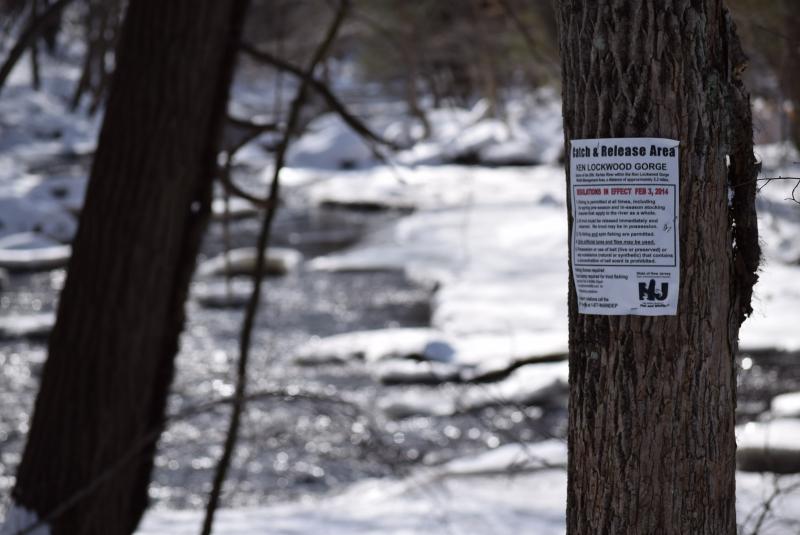 The Gorge is a little icy. Those little black stoneflies are going to be a little late this year from the looks of the rocks. You'll need snowshoes or cross country skis to get farther from the road if you go.