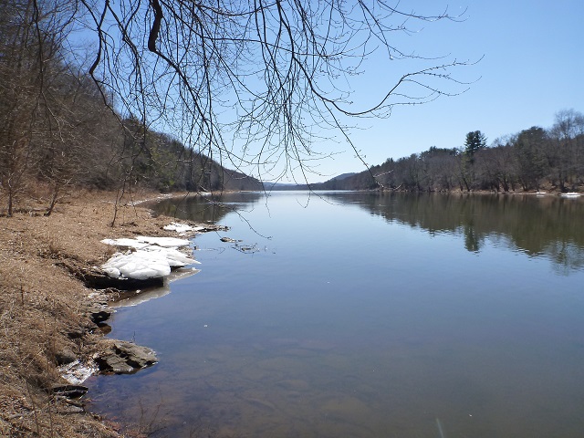 Continued my spring scouting of ponds. My honey hole bass ponds are still about 90% frozen. Guys were ice fishing on Culver, Swartswood, Kittatinny Lakes. Decided to swing by the big D and see how high...wow...not high at all. Ice free and actually pretty clear. No signs of fish though.
