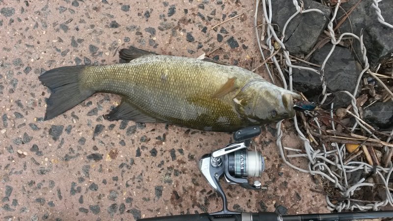 Hit the mighty raritan this week with decent results,picked up some eye's, pig smallies and some LMB's all fish caught on rattle traps. Today I saw good showing of shad but none for me
