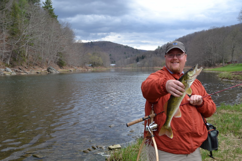 ![]() On Friday my dad and I drove up for our annual spring float on the Upper Delaware. After checking in at the hotel, we stopped at the West Branch at the Route 191 bridge on the other side of town. Water was low, and still dropping; we didn't even bother with waders. Walking the bank I got a rainbow, a brown, and a surprise walleye, all on a gold spinner. Dad got a couple of follows but no hook-ups. A fly fisherman showed up and started banging them one right after the other right across the river from us.