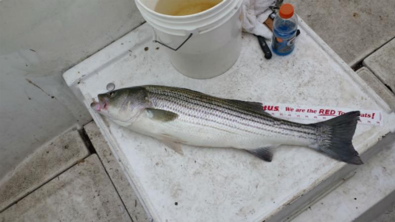Hit the salt first and put some blood on the deck. Stripes were on fire for us last week of April. Then the blues invaded. Went out yesterday in the lake and got blown all over the place. Still got 3 smallies and this beautiful 21" rainbow. Looks like it had a sore on its gill plate if you zoom in. Anyone think its anything disease related? Fish seemed healthy and fought great outside of that. Wouldnt want any diseases in Round Valley.