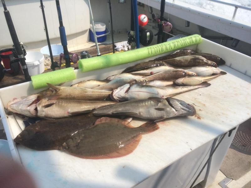 Sunday we ran a 5-5 OPEN BOAT MARATHON LING / COD / FLOUNDER trip on the Down Deep with a great group of returning and new guys and gals. Dialed in, Capt. Rob proceeded to place the boat over productive areas where our gang went to work and pounded the bottom. Very good Ling fishing with a bunch of keeper Cod and big jumbo Flounders. Big smiles