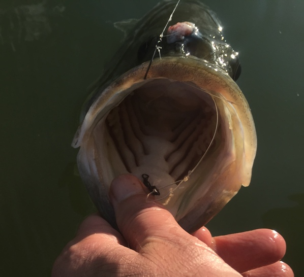 Do you have any amazing catch & release stores to share? Last month I was fishing for perch on a very well known and heavily fished New Jersey reservoir when the tiny lure was hit by a stocky sixteen-inch Largemouth Bass with a distinctive ulcerating tumor between his right eye and mouth. I managed to land the fat boy on a light rod and proceeded to take some selfies with him. When I went to pull the hook I noticed he was hooked in a precarious spot where the gill meets the bottom of his mouth. I probably should have cut the line, but I reasoned it was a small hook and popped out the hook. I was startled when his mouth was suddenly filled with blood. When I placed the fish back in the water, he swam away but there was so much blood the water looked like someone just dumped a can of fruit punch in the lake. I felt horrible that the bass was released in such poor shape. I never want to kill a bass, but if you stick hooks in enough fish, you're going to make a few bad releases. The next week I was fishing for perch in the exact same spot and to my surprise the I caught the same bass again! It was easily identifiable by the tumor on his face. This time the bass had somebody else's heavy-duty snelled line and a snap-swivel protruding from his esophagus. I was amazed. In one weeks time, this bass was: *caught by me *released bleeding profusely *recovered enough to be caught again by someone else *this time he was gut hooked * caught for a third time by me again! * released I learned a few things from this experience. 1) Bass can recover from a hook injury if you get them right back into the water. 2) The fishing pressure on this reservoir is intense. Think about it. If that bass is getting caught three times in one week - how many times has that bass been caught this year? How times in a fish's life is he caught and released before a bad release or some selfish jackhole kills him? . Here is a picture of the bass. Noticed the tumor and the snell with the snap-and-swivel. The small hook in his upper lip is mine.