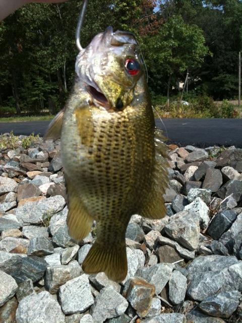 There used to be this one Rock Bass in the lake right by my house and he'd always be sitting in the exact same spot for around 3 years. Was the fattest fish I've ever seen, always had a giant belly. Was actually keeping tabs on him to see if he would one day hit the state record. But I haven't seen him in a while, I think someone took him since he was visible from the shoreline. Here's the last few pics I have of him from maybe 2 years ago or so.