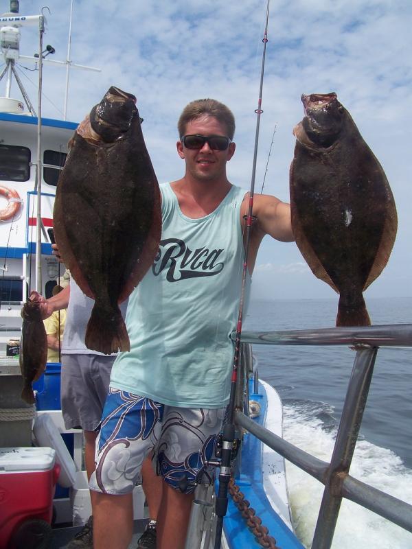 Had to work twice as hard today to get it done, as you know from reading my reports over the years, I don't sit on my ass waiting for something to happen, I try to make it happen. Worked several area's with a pick here and there, when I didn't think this was the place it was going to happen, we took off. Found some nice Fluke once again including Nick's pool fish at 6 pounds. Not a great bite anywhere, but action to keep everyone on their toes.