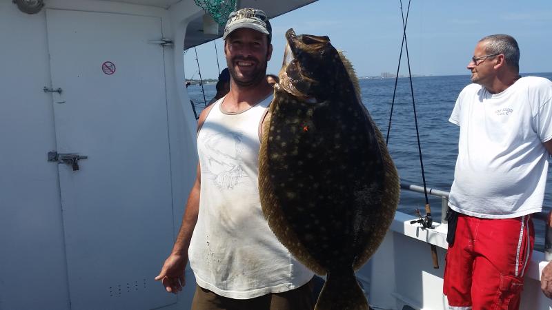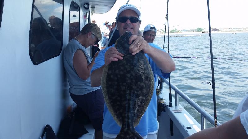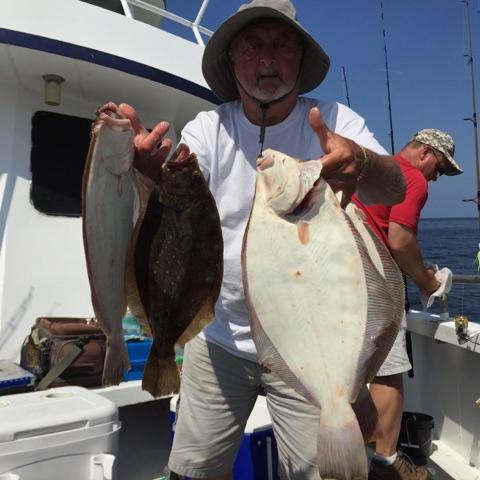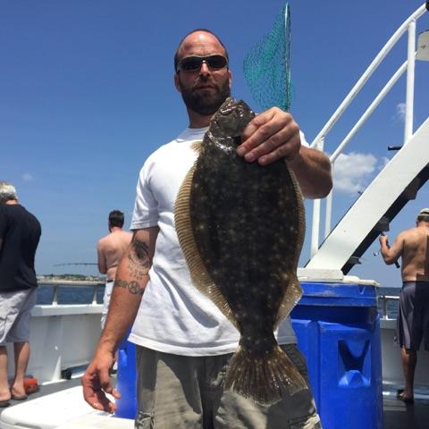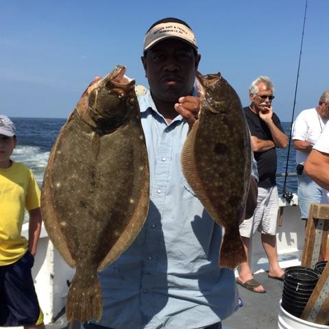 7-10-15 Now that was a nice day,,flat calm beautiful nice breeze out of the north,,almost perfect conditions...Current was with the wind so we covered some ground,,fishing was slow to start,,actually we did well catching fish most of the morning..just alot of fish went back,,17 inch fish were numerous..Eventually the drift slowed down and we moved a bit deeper and started to see some quality fish come to the net...Scattered around the boat fish were coming in consistently,,,both keepers and three fish in the 6-7lb.range and one fish that took home the money at just a few ounces under 11lbs..Nice showing of 2-5lb.fish as well...Good fishing late today overall and some guys ended up with a limit of nice fluke,,,some had 2,3,and 4 again and some just cleared away the shorts...Overall some big fish and good fishing..Tomorrow looks awesome again...see ya for coffee..oh and the big fish today was not in the seasonal pool...get in on it!!!