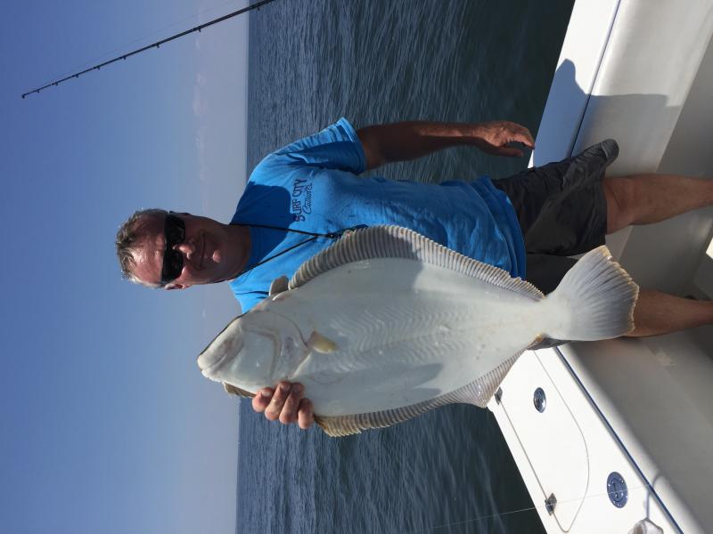 Ran out open boat trip this morning with Paul, Art, John, Steve, Barry and Ken. Headed right to the rough bottom and had a nice pick of keepers with some sea bass and ling also mixed in. Threw a 9.5 pound keeper in the cooler here early in the morning. Lost the drift and started bouncing around. Once we found the current the guys began to pick again with some quality keepers to Johns 8.5 lb fish. Ended the day with 16 keepers, half dozen sea bass and a half dozen ling.