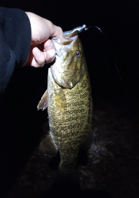 Caught some fish last Friday nite on the raritan... A schoolie striper, a small smallie and a nice 16-17" smb. All on soft plastics and an 1/8 oz jig head.