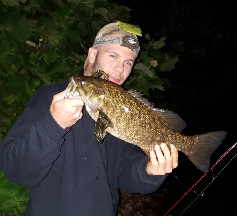 Anyhow, let's get to the catching, shall we? Had a large channel that taped out at 26" inhale my soft plastic in some very fast water--led to a fun, running battle downstream as she peeled away. CPR. Hooked into a freight train about 30 min later that I could not stop. Easily dumped 3/4 of my spool then the hook popped. My guess is either a huge catfish or a foul hooked carp. Whatever it was, it was mongo! About an hour after all of this JimmyLiveBait joined me. We casted for a few more hours. I had a smaller 4-5 lb channel bang the hard plug I switched to. Then Jimmy says "I calling it, bud". I say, "I'm gonna take like 3 more casts." First cast, BOOM! Big bronze @ 3am... Fish goes totally ape sh*t. Jumping all over the place and shooting all over the river. My drag was singing that sweet, sweet tune. Up, then down, then up, then back down... Head thrashes and somersaults--just awesome as we're watching this with our headlamps on. Then she darts to my left, hard, and beaches herself in a thick mat of weeds and branches. I reach down and lip her. Nice river boss! Over 20" and THICK--prob 4.5+ lbs. Beat the pb river smallie I had last wknd! Didnt make another cast after that and headed home. Good night... Pics below. Catch em' up!