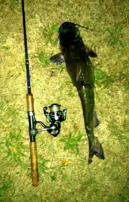 Since any fishing beats no fishing, made the best of it by dragging over a cooler, some old uncooked sausages, a light-up bobber and an old beater pole I use for catfish. Threw the bait around for about an hour. Nothin' doing. Couple tepid bites but no takers. By then, it was well after dark... Dark everywhere but in the circle of light from a streetlight I was standing under. Was just about to give up, when something suddenly hammers my bait and screams off around the pond. Ran me hither and yon in a 15-minute give and take of line that seemed mere seconds from ending in a snapped line multiple times. Finally get the fish close to shore and see it's a big channel cat. He had swam through so much muck and algae though, that I could barely see him under the thick slime that rings the pond. With the fish tuckered enough to make a play for him, I reached down over the bank, lifted the line enough to get a grip on him and............ SNAP! Oh, the cursing that rang out through that sleepy neighborhood. Snapped my line while reaching for him. Light-up bobber snapped off the line too and was floating a foot or two off shore. So, naturally, I did what any fisherman would: 1) curse; 2) curse some more; 3) drop my rod in disgust; and finally, 4) eventually reach in to pull out my light-up bobber... ...and as I do, I see the algae and muck move. A little movement. It's so dark though, I can't tell if it's my fish, a snapping turtle or an angry muskrat. So, I pick up my rod, poke it into the muck and swirl it around a little. I pull the rod tip out and there... is... my... snapped fishing line... wrapped around the tip of my pole! Reached down with my free hand and grabbed the loose line and realize the cat was still on it... Pulled him ashore hand-over-hand like the Old Man and the Sea. Craziest catch I've ever had. Managing to land a fish by hand AFTER it snapped the line. Crazy. Turns out he truly was the proverbial "big fish in a little pond". Went about 23-24" and 5+ pounds, easy, I'm guessing... Took a quick snap and returned him to the micro-pond to fight another day. Now that was a fun catch. Last edited by goodfishin; 08-31-2015 at 10:10 PM.. |