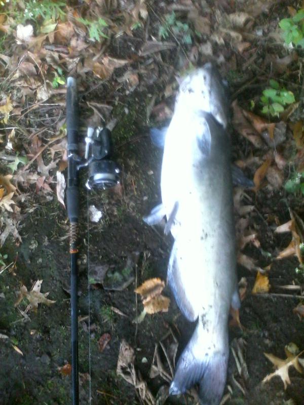 Caught it yesterday evening with my homemade corn meal bait on a #8 treble hook, 12 lb test line and my very old Mitchell #300 spinning reel and 7' Ugly Stick. It hit hard and fought tough for > 5 minutes, giving me and my drag a workout. Since I couldn't beach it because of a dropoff, I jumped into the lake with my LacRosse knee boots but its head was bigger than my hand so I couldn't grab it. When I put my thumb in its mouth, it tried to crush it a few times. They are really strong.