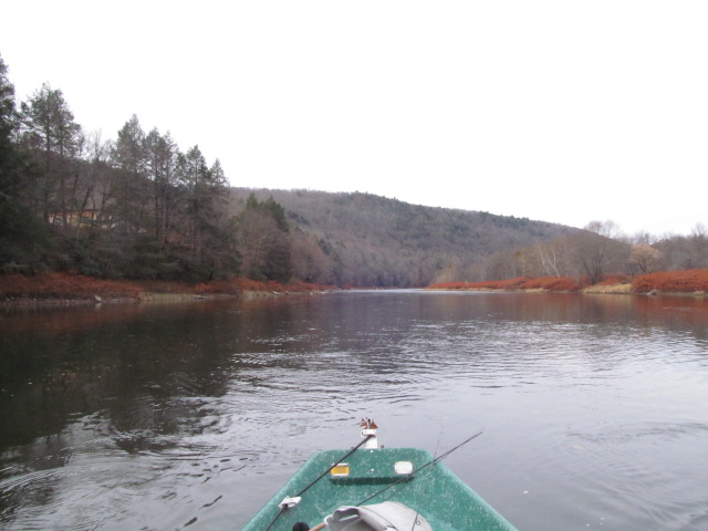 My first time floating the Upper D with my guide in November. The skies were nice and grey for the better part of the day with an occasional gusty breeze. Leaves were on the top of the water but not a huge problem, water was cold and gin clear. We floated from Long Eddy to the town of Callicoon.