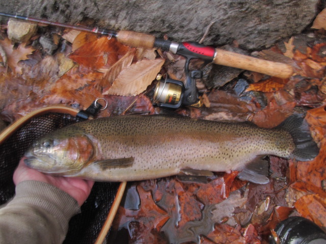 . Hit other spots well below Clinton Falls but couldn't find any takers. Ended up on the main stem of the Raritan river and found some good trout action, all fish released to fight another day. |