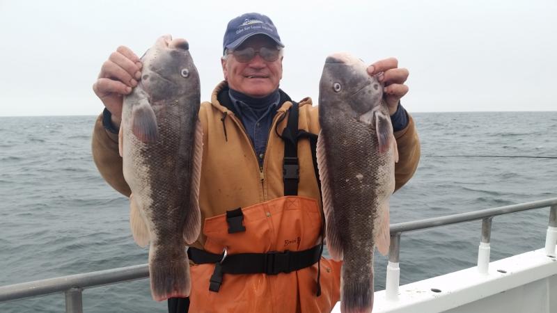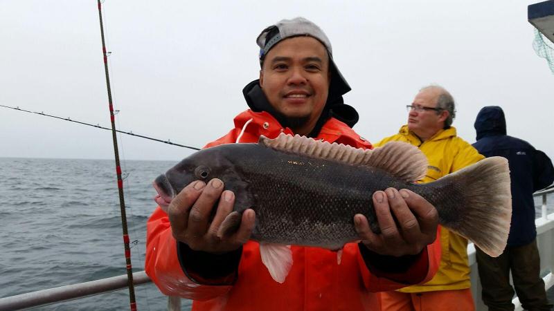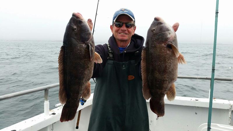 12-23-2-15 Some crummy weather today,,,rainy,,fog,,lumpy ground swell but the fish were chewing..We had very good fishing today with guys bagging a limit of blackfish early on in the morning..The bite continued through out and some guys were dialed in and just nailed em all day long...Good day all around with a great group of people and some quality fish......The seas were building on the way in and the winds are supposed to crank up tonite and bring with it a big ground swell for tomorrow...seas supposed to run 6-9ft.so we are gonna cancel...No fishing tomorrow or Friday for Christmas...everyone had a great holiday and we will back down to the boat Saturday morning to fish again..See ya Saturday...Merry Christmas!!!