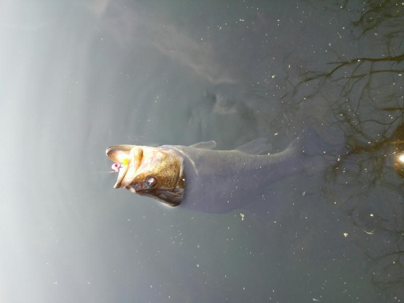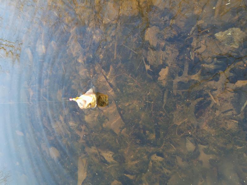 Caught a bluegill, 2 largemouth bass and 18 black crappies while ultralight jigging a 58 degree small beaver pond in Central NJ this evening. 2 beavers arrived at dusk. Fish were sunning on the surface. I got green slime on my lure on nearly every cast. Mosquitoes were all over me.
