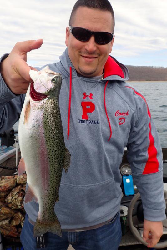 Couple of gorgeous rainbows for my friend Phil an I yesterday on the Valley. Most of the reservoir at 38 degrees with some pockets up to 44. Enjoy! Capt. Dave
