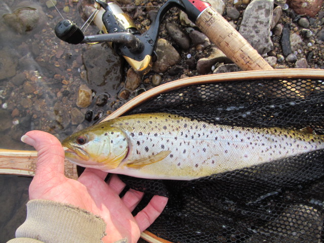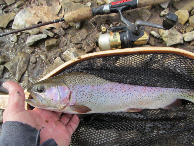 Started at Hamden Road and got a nice brown, moved down a bit got a nice rainbow. Worked my way all the way to the main stem stopping at a few spots along the way. Rolled a few others. Let the fish go, kept the tires.