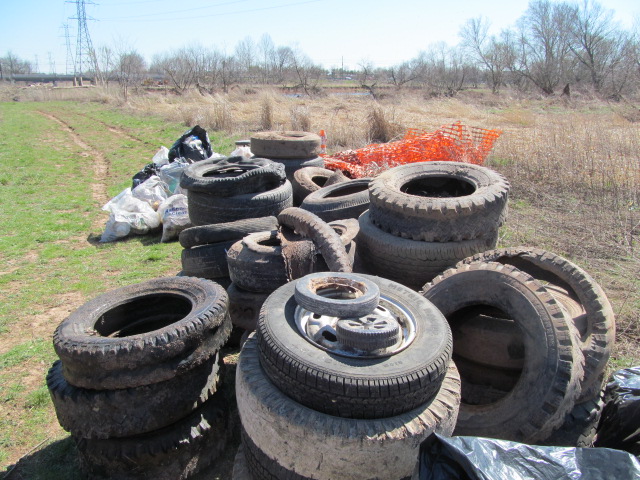 Water still a little cold to go in and pull out tires, so we hit the floodplain in Finderne near Manville. Working with Central Jersey Stream Team we collected a bunch of trash and close to 70 tires.