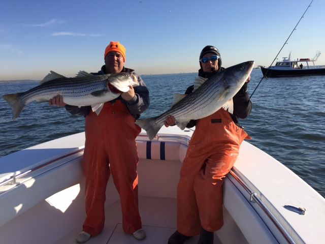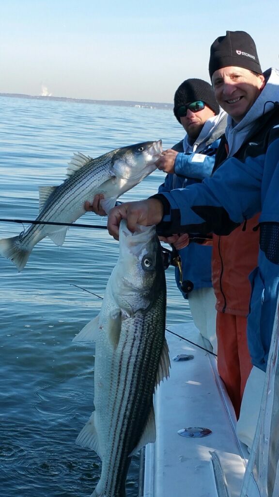 Headed out at 7 this morning with Murry, Bill, and Chris. Started seeing the bait and soon as the guys lures hit the bottom it was game on from start to finish. Absolute insane fishing this morning with up to 5 on at a time!! Ended the day landing around 75 stripers this morning with the majority of them being keepers and maybe around a dozen shorts. Murry had the big fish for the day tipping the boga to 27 lbs. Back to the dock and cleaned up a little after noon.