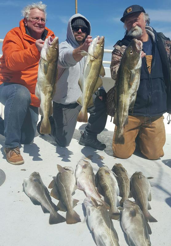 I believe all the cod were caught on clam today. I tried jigging but didn't have any success.