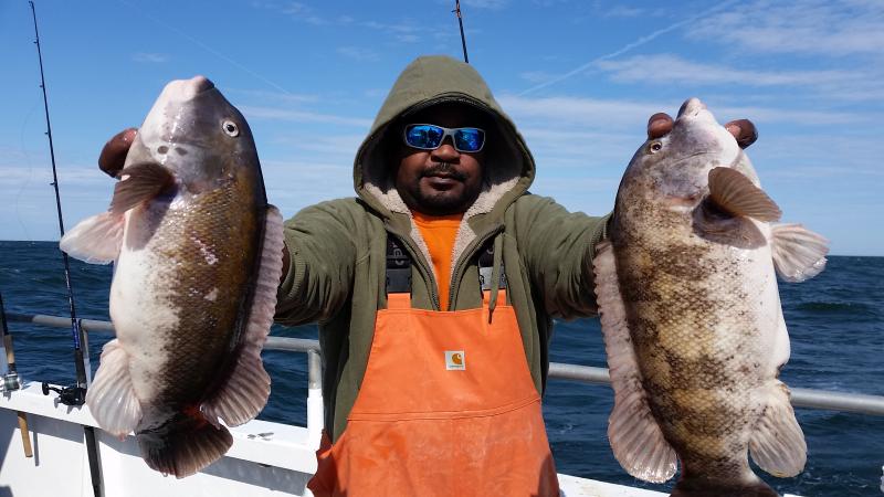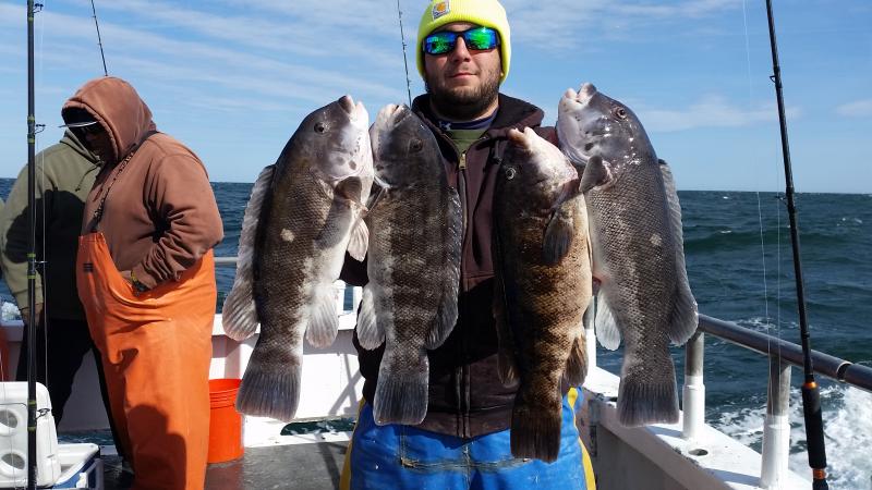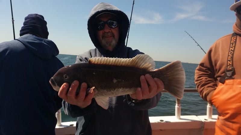 4-6-16 Good to be back out on a beautiful day,,,,got a late start due to a engine starter crapping out but we got it changed fairly quick and made it out to the grounds about an hour late..Fish were chewing as soon as we stopped and had fish up from down to the back..even despite some wicked current..luckily we were in 60ft.of water so we could manage but man was that current cranking.....then the south wind started cranking up against it and I had a tough time keeping the boat still....Eventually we straitened out and the end of the day they were chewing for some of the guys again,,,Skip caught the pool on the last stop,,,,about a 7lb.fish and one lucky angler even had a limit on the last drop so we cant complain about the day,,just not everyone caught..check out a few pics....tomorrow is canceled due the howling south winds through tomorrow forecasted...Friday the winds go west again so plan on our next trip Friday morning!!!See ya then...