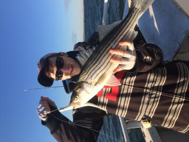 So we started off our bass season the way we wanted - catching fish!! It started out slow we poked around and jogged some fish but not what we were looking for. We decided to setup clamming and that was the ticket. The fish would come in spurts but it was handy fishing. Mostly shorts (lots of measuring, the majority of the shorts just missed) and we had keepers mixed in. All in all we had between 30-40 fish. We are ducking out tomorrow with the windy forecast but will be doing a special trip Sunday leaving at noon til 6 pm we caught the majority of our fish on the outgoing tide so we are trying to capitalize on this. Call Ray for details and reservations 7428036276