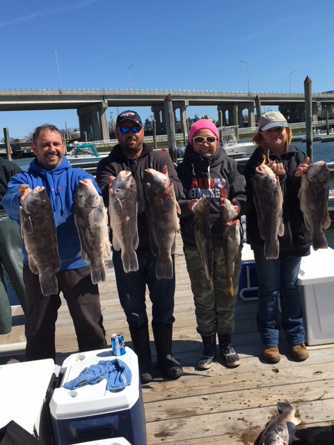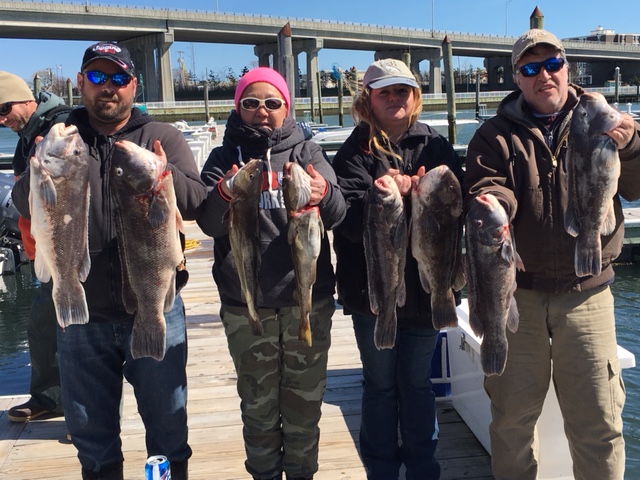 Had a really nice day on the water yesterday, first trip of the year for us. Started off windy and cold but the wind eventually stopped and turned really nice until it picked back up on the way in. Only had to work a couple spots to get our boat limit and had fish from start to finish with almost half the fish between 6-9LBS. Jeff had the nice 9.3LB slob and we also had a few cod mixed in as well!
