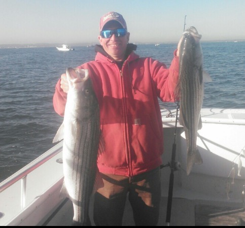 Fishing continues to produce Stripers in the mid 20 lb. range with everyone getting their share and releasing plenty for another day. Thanks to all the regulars, my south Jersey & Philly guys both new and returning for sailing with us. Back at it in the am for the round 2 ko. Many pictures posted on our website. Don't miss the next open boat trip -