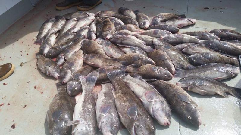 Fish Monger II Tues 4/19 Blackfish Another Full Boat limit+++ (13 man) to 8lbs! Much better conditions today finally some nnw breeze and no swell...