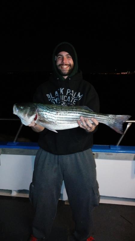 Matt from the hardware store with his first keeper of the season last night.. Sailing 7 Nights a week Monday-Saturday 6:30-11:30 and Sunday 3:30-9:00.