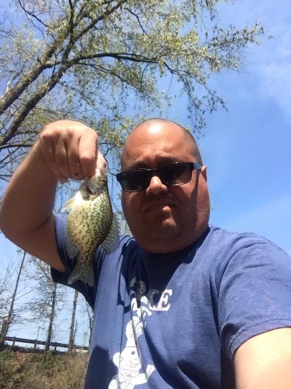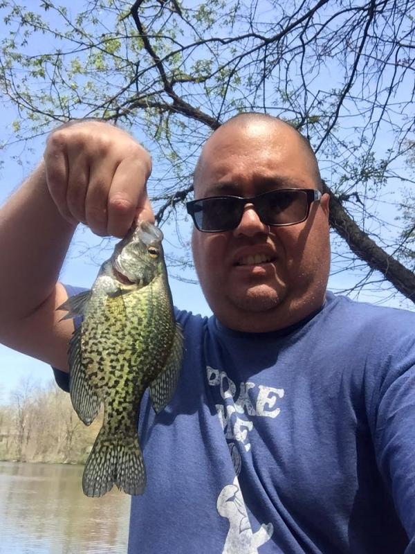 Slammed the crappies again yesterday for about an hour and a half yesterday afternoon. Weather was gorgeous...and saw a ton of largemouths cruising the shoreline and ended up with one dink bass that is about the same size as the lure I was using as you can see. The crappies were not as big as the other day...but still caught over thirty of them. Another great day!!!