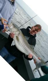 Here's one beautiful girl holding her 43+" Striper, along with many others caught aboard the Down Deep Bull with Capt. Tom and Gene. Many more pictures of all the action on larger fish on our website. Even the flat ones wanna play, we will be targeting them very soon. Thank you to everyone who have booked up, sailed and those with upcoming trips. Fishing is excellent, check our schedules and book now. Dont miss the next open boat trips-