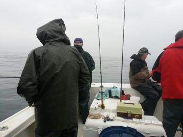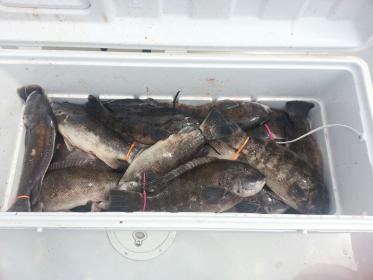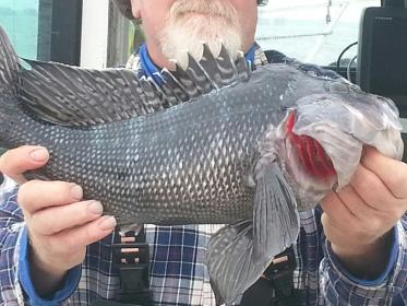 It was one gray and wet morning, we were one fish shy of the boat limit, and we caught one lucky Seabass. We had to hop around a bit to put our catch together but we still managed to do well. I picked up a wayward Seabass at the end of the day. He went 3-4 lbs. Took a quick pic and sent him back.