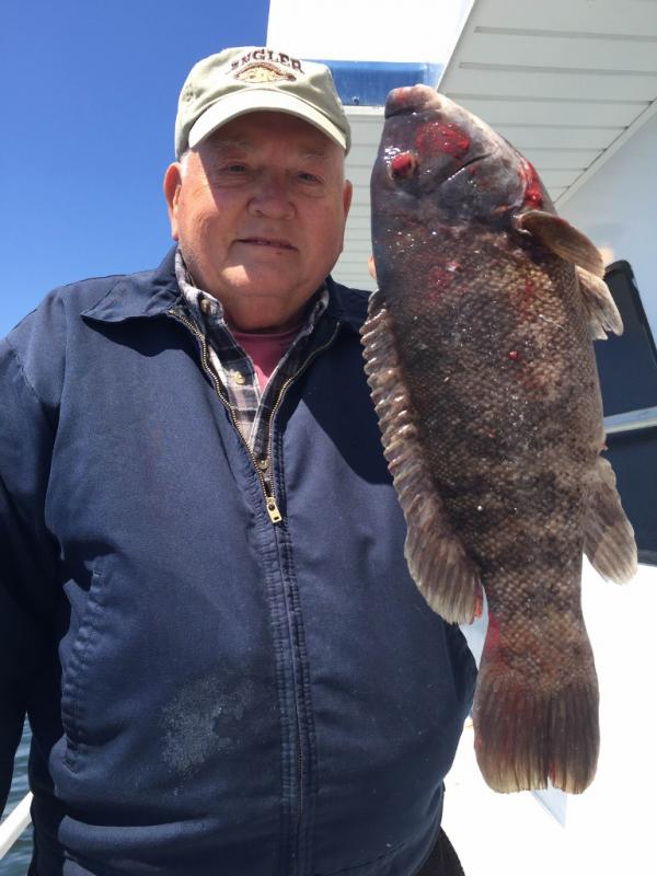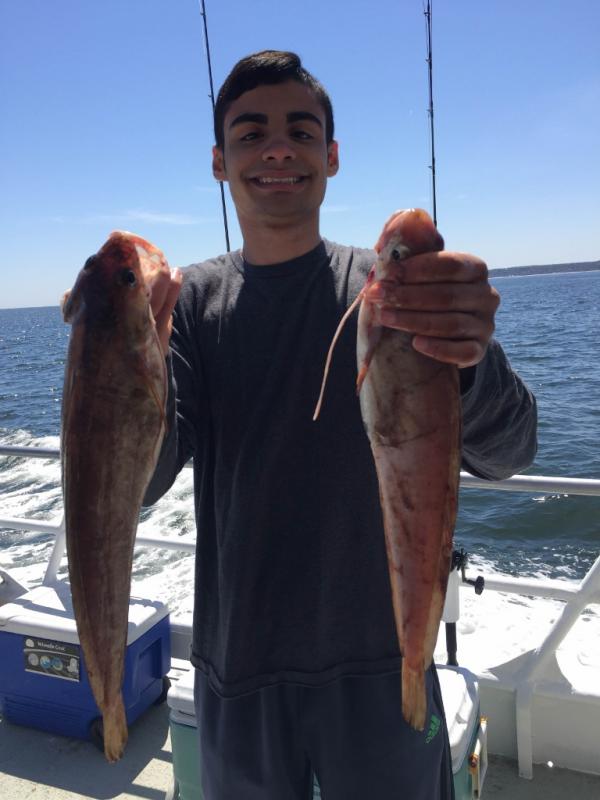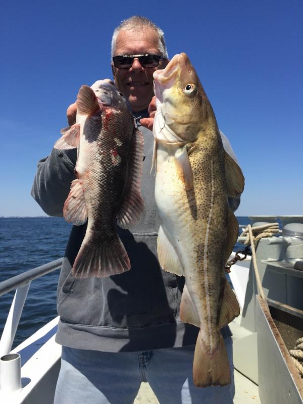 Todays fishing was much slow than yesterdays with most tog being short and only one cod today and a few ling on every drop. We do see some sea bass and fluke starting to move in and we should see more fish each day. The pool today was a nice cod and i will ad his name later.