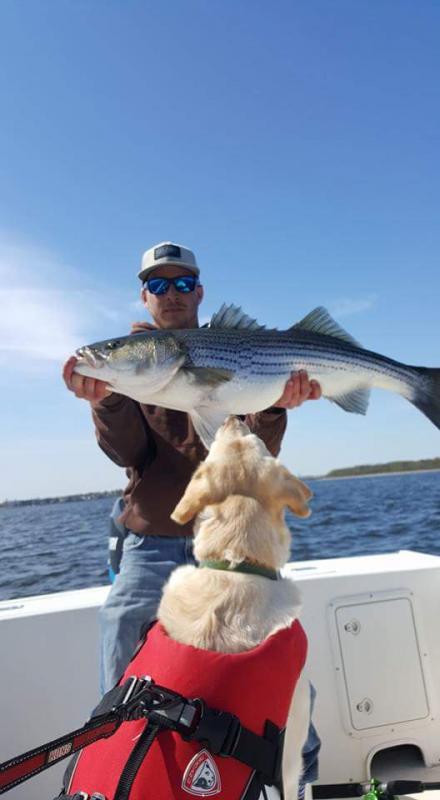 Headed out of Keyport around noon with the fiance and dog. Was not expecting to get much fishing in. Decided to stay away from the crowds and put the trolling gear out..Pretty slow for us most of the day but we had a nice flurry of action landing 4 keeper bass (all released) up to 22lbs and missed a few others. We were back to the dock by 5, ended up being a great day.