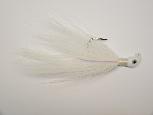 Gang developed a new bay and skinny water jig and an upper teaser jig for the double bucktail jig setup. These jigs are poured on 5/0 Mustad black nickle Ultra point hooks. Strong enough for the heaviest doormat flattie.