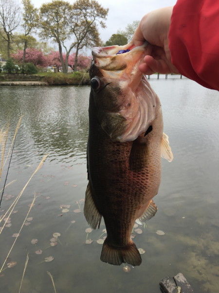 I was going to hit up a local pond with a work buddy of mine after work was over, but he bailed last minute, so I went by myself. Caught a small bass almost immediately, thought it was game on. After fishing my favorite cove without another hit, I thought it may be a tough bite after all. I get to a gravel bank next to some pads, and I see a 2 pounder on a bed. I wasn't too interested in him, but I knew the female might be around, so I took a few casts. As I was bringing my chatterbait through the pads, it feels like I get stuck on a stem. I try to jiggle it free, nothing. I try jiggling it again... it jiggles back! I come tight on the line and see a MONSTER bass turn broadside with my lure in its mouth! Didn't even have time to set the hook before it took off for deeper water. All I could so was keep the line tight and wind, praying that the hook would hold. Fortunately it did, and I wound up with my best bass of the year so far. I didn't have my GoPro with me, but I did take a couple of photos.