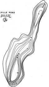 In case the contours are not legible on the attached, contour lines are in 3 ft increments up to 33 ft (hole in top narrow portion of pond is 18 ft deep and lower part gets as deep as 33 ft). Lake is natural and fed by stream flowing into narrow top portion. It is surprisingly deep for its size.