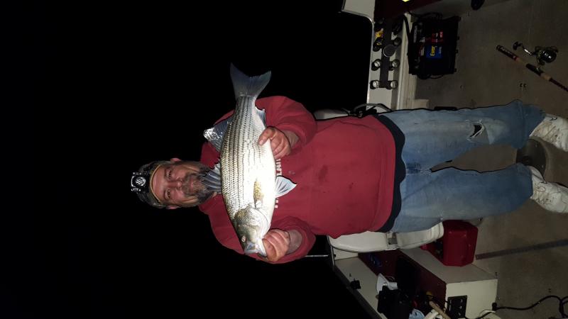Jumped on with dale last night from 11pm to close to 2 am. Sporadic bite but put a decent catch together. 3 hybrids each to 24+" and I added a nice 3-4 lb largemouth to the tally. Some pics below.