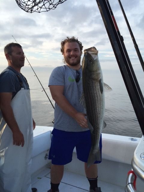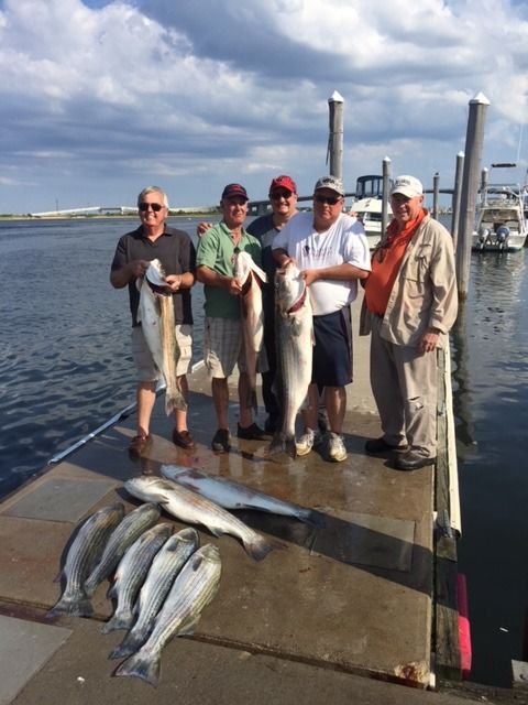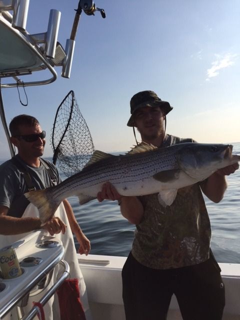 PM- This afternoon we had the Dennis Oneil party out. Reloaded the wells and had almost a repeat in action of this morning. The party was able to land 23 keeper sized striped bass to 38 lbs (only keeping legal limit) before calling it and early afternoon. ![]() ![]() ![]() ![]()