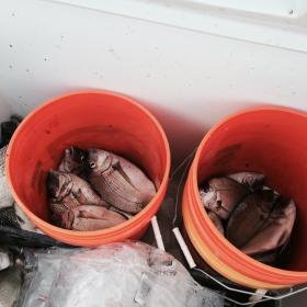 We had an excellent day with jumbo porgies , Seabassea. , and some fluke. Some of the porgies, were3 pounds , not all like that but a lot of jumbo porkies in the 1 3/4 lb to 2 lb plus though that's old time size , Unfortunately I'm old enough to remember , Along with mediums and smalls. We also had a limit of big Sea bass as well, Along with a few fluke. All in all a great day. We have an open boat on Sunday with plenty of spots available, call for information and reservations . Pictures to follow