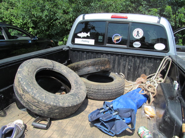 Met Wilson and Kcritch at the confluence of the N and S branch. Didn't spend much time there as the N Branch was choco milk ! Went to the lower S Branch and it was running clean. We had a decent pick of SMB, nothing huge but some nice fish. Grabbed a few tires on the way out and cleaned up after some pigs in the parking lot.