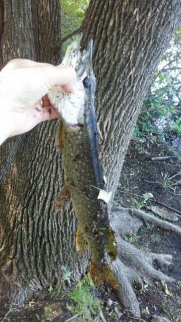 Went to my usual spot on the Passaic and it was a muddy mess from the water flooding and receding. After an hour of no action, I decided to explore and try to find a new access point. Found one with a nice clear trail through the woods which rewarded my short hike. Little 20" pike and had a smallie quick release itself right at the waters edge. Fun day.