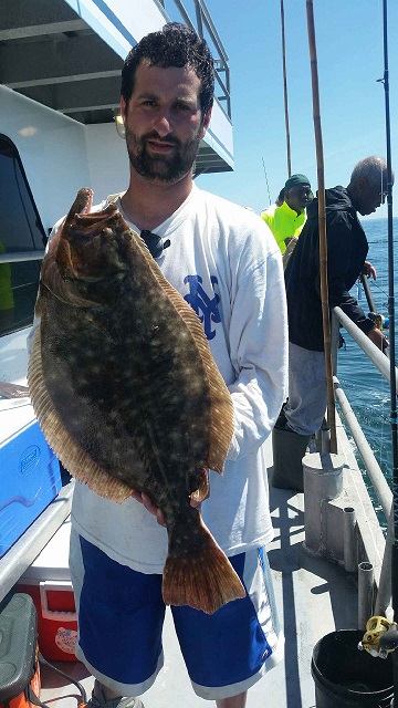 ![]() Conditions for Cod were tough - steady 20 MPH winds, strong current and wreck fishing 300 feet deep - but the fish were there. My son Brian & I each caught a dozen or so cod (up to ~20 pounds, ORL of 10) and the same # of Pollock, also up to 20 lbs (no limit on Pollock). We had to use 20 ounce Norweigen jigs, although clams worked too. Unfortunately I have no pictures from Day 1, we zonked out after jigging so many hours and the mates fileted our 3 totes of fish while we crashed. WE slept at sea, anchored up off Nantucket in calm waters. Engines started up after daybreak & we hit the shoals after a short run. Mates had to shake Brian awake in his bunk when boat started fluking. He went from coma-like sleep to fluking in under 5 minutes. Fluking was the best I've EVER experienced. Brian & I each had our limit by 9am. Bucktailing was next to impossible, even using 12 oz jigs. We used some NJ techniques that succeeded: - used the Ron Santee Sr. rig: 20 oz sinker on bottom, 2 droppers above tipped with Gulp! and bait - the NJ spearing we brought were bigger & firmer than the boat bait - Mass. fluke were all over them Even though we were bailing fluke, many anglers were struggling. Mates told us to help fill others' limits so we started to upgrade our catch and give away some of our smaller keepers. Of the 10 fluke we kept, they were all 22+" up to Brian's personal best of 28"/8.2 pounds; my best was 27.5". Pool winning fluke was 13.9 pounds; pool winning Cod/Pollock was a 30 lb Pollock. This trip was epic & I now understand why they sell out so quickly. The boat does several 2-day Nantucket layover fluke trips, but only 1 "CAptain's Special" each summer. This trip will become a yearly event for Brian & me and hopefully some NJF'ers will join us next year & beyond (btw - no cell phones went swimming!)