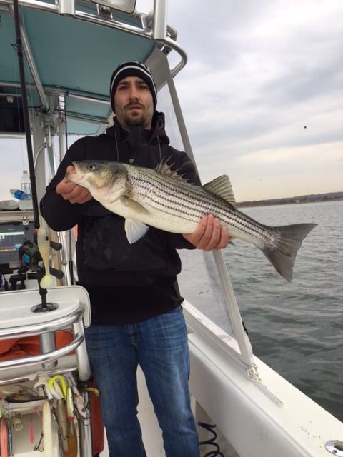 AM- This mornings open boat trip saw good action with stripers. Started the morning jigging and stayed with it all morning. The guys boxed their limit (6) of 28-43" fish and their limit of bonus tags, then released another 50 bass before calling it an early morning.