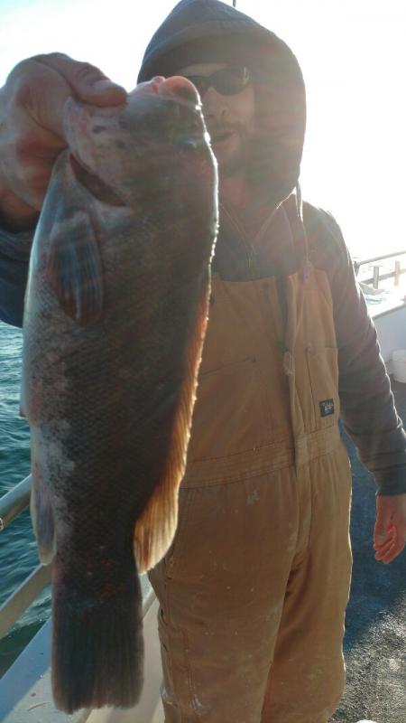 Hey guys, tough conditions made for tough fishing today. Good thing we have tough fishermen. Everyone put fish on the table today. All in all not the best day. Charlie was our pool winner today with a 4.5 lb. Blackfish. Tomorrow's weather looks like hell so we'll see you Wednesday if it gets better. We'll post tomorrow and let you know.
