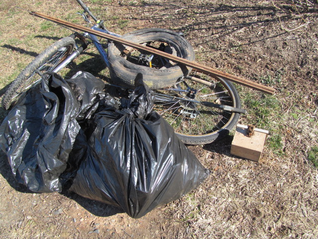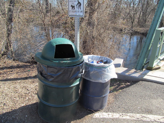 The majority of the time I was able to lug the garbage up to the trash receptacles where I sorted the trash and disposed of it. I started getting backed up as I had accrued too much trash and starting filling up the back of my truck. I was going to go a day 6 along the Torpey section of the river in Bridgewater but my truck is full so it will have to wait. Many thanks to those who came out and joined me. Couldn't have done this if there were 2 feet of snow on the ground, taking advantage of that during this winter. Most spots never spending more than 3 hours at any given location. No ticks on me so far and I found a dollar bill at Nevius St. so I came out ahead. Didn't take many photos over the 5 day period of cleaning.