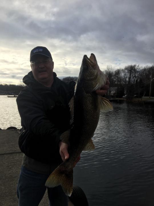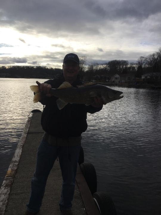Late Saturday a friend and I decided to give some perch and crappie a shot. Got a late start and didn't start fishing until around 3:30. Overcast and a bit windy but fishing was good. Crappie didn't cooperate but perch fishing was on fire as we lost count during 4 hours of fishing, keeping a dozen or so for the table. Found a good concentration of primarily males holding in slightly shallower water, moved a bit deeper and found non stop action with larger mostly female fish. All were caught on jigs under a float. With all the pan fish in the area, thought maybe there'd be some walleye cruising around at witching hour. Switched over to a swim bait and first cast hooked this beautiful 28.5". Few pictures and she swam off strong. Great way to end the day and start the season.