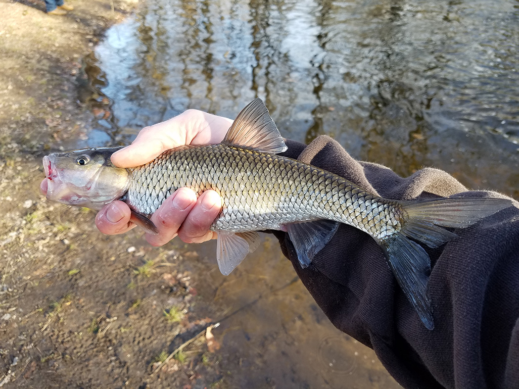 i was near another stream that i had been meaning to try so decided to give up on the stocked trout for now and go after some wild ones. short drive and back on the water. walked up on a few pools, spooked fish, then walked more stealthily upriver to the next big pool. couple casts in, got a big hit, peeled some drag on my stocked trout setup and got off. another few casts later same thing again. changed lures and finally connected with a beauty of a native brook trout. great fighter, jumps, much more energetic (and larger) than the stockers from a couple hours earlier. pic doesn't do it justice (i have big hands). kept going up the stream and playing with the native brookies... most too small to hook on the spinner i was running (flies would have been better) but a few nicer fish mixed in. all were very active happy fish with fat bellies and C&R'd. native brook trout video ![]() ![]() by then it was getting warm and i was hungry for lunch so i headed back towards home. figured that the stocked trout might be more active than earlier in the morning, so stopped at one of the now empty holes close to home and quickly completed my limit of stockers. a lot of follows, light strikes and dropped fish though, like the fresh stockies are still figuring out how to eat a lure right haha went back out with my buddy in the afternoon/eve and tried a few more spots. c&r some more rainbows plus a nice for the creek larry and a big old fallfish (musky candy) ![]() ![]() real slow start for the opener but that was expected with the cold night. things picked up in the afternoon quite a bit as the water temps went up and the flows went down. one spot i fished morning and evening was down like 6" in 10 hours. all smaller streams today because the main rivers were blown out around here, but i bet everything will be fishing real nice later this week. ![]() all and all not a bad day. brought about a dozen stockers to the net (ORL). did notice that the hatchery rainbows seem to be a little smaller this year than last. nothing that was sub-legal, but just smaller on average i think, at least the places i fished. i guess that's just how it goes. hopefully some of the later stockings will bring some bigger rainbows. well that's just the start, another two months of trouting ahead of us good luck to everybody hope all have an enjoyable and safe season