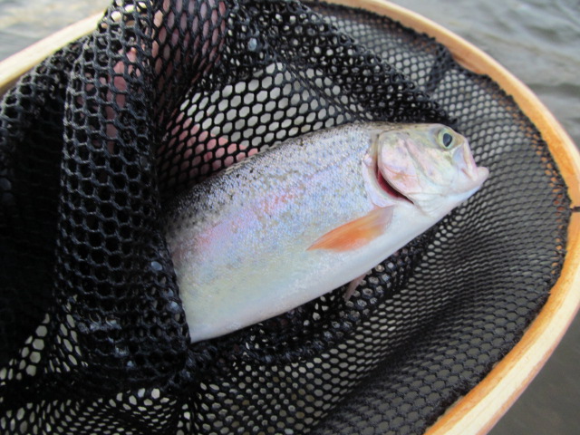 Started at Robert St. Got a real nice 15" rainbow right off the bat. Found I didn't have my net, standing in the middle of the river, quick release, no pic. Went up to the car and got my net, moved down where the old dam used to be, got a few cookies cutter rainbows. Imagine that, I was able to catch fish without a dam there, I must be some kind of miracle fisherman or something.